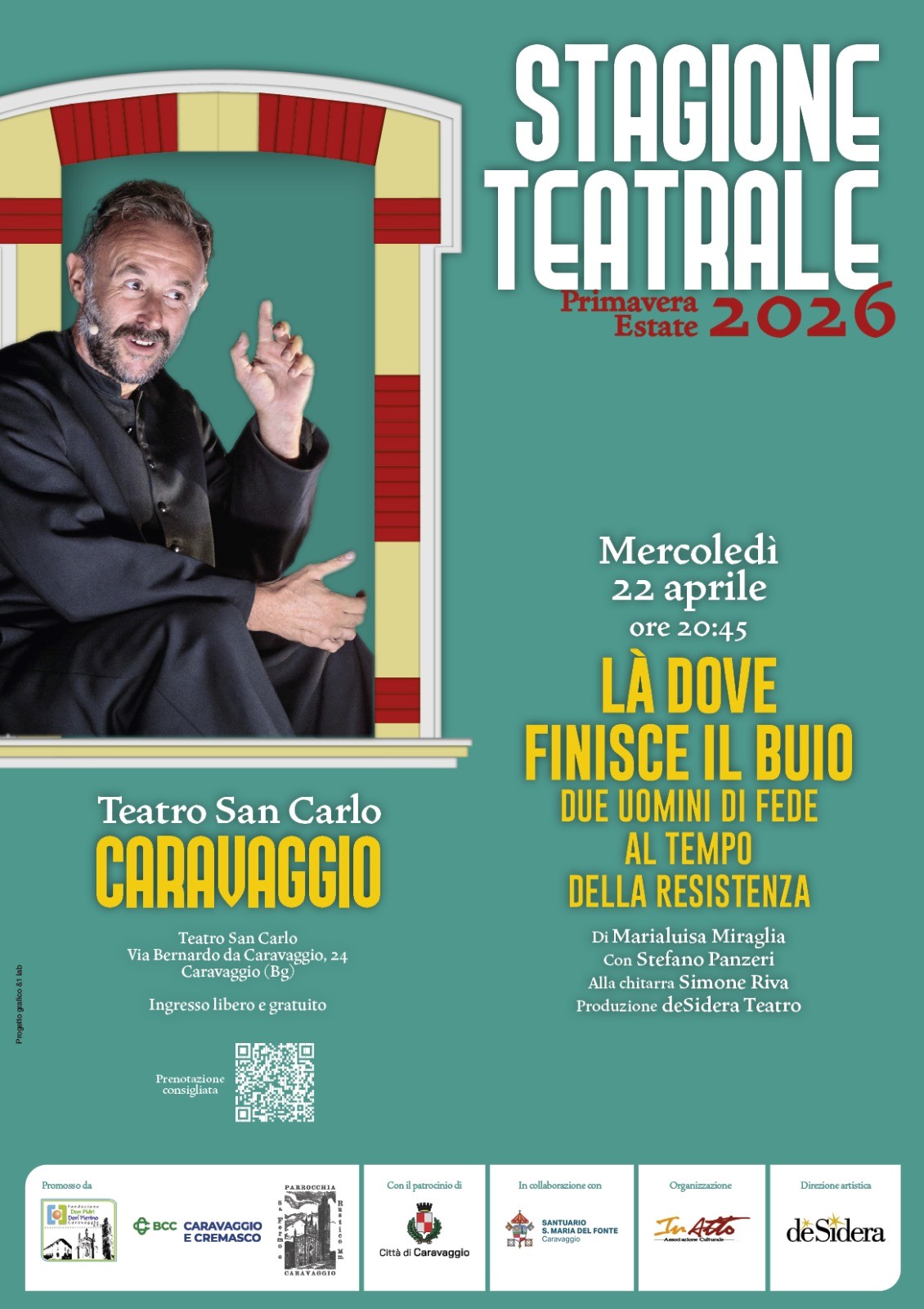 La Fondazione Don Pidrì e Don Pierino ETS, con il patrocinio della Città di Caravaggio, organizza lo spettacolo teatrale "Là dove finisce il buio" che si terrà presso il Teatro San Carlo dell'Oratorio di Caravaggio.